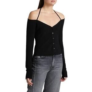 Good American Women Black Stretch Rib-Knit Off-the-Shoulder Slim Halter Top Size M
