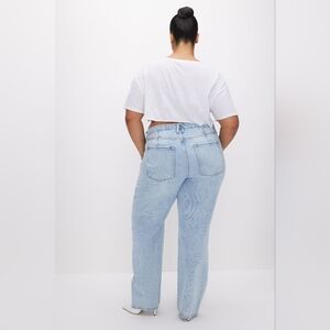 iconic ‘90s inspired relaxed jeans with wide leg openings and an effortless 1" drop crotch. Good ‘90s Jeans are designed to fit loose through hips and thighs, with a floor-length slouchy look. Crafted from our signature rigid denim, Good ‘90s Relaxed Jeans provide freedom of movement and flattering fit with a laid-back aesthetic. For a relaxed fit we recommend you shop true to size, if you're looking for jeans with a snug fit around your waist, we recommend going one size down.