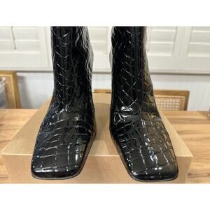Good American Women's Ankle Boots Croc Embossed Black Size 7 NWOB Square Toe