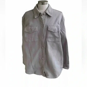 Good American Women's Fleece Shacket Shirt Jacket Size 1/2 Med Small Bone Khaki