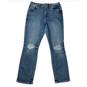 Good American Women's Good Leg Cigarette Distressed Knees Blue jean Size 30X26