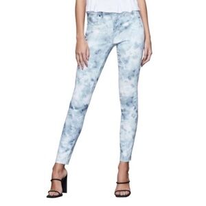 Good American 'Good Legs' skinny jeans in "Cloud Tie-Dye". Raw hem, high waist. Excellent condition.
