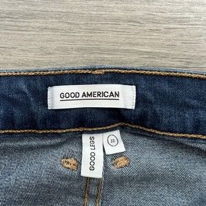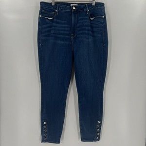Good American Women's Good Legs Whiskered Blue Crop Jeans Snap Hem Size 22