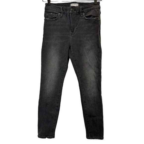 Good American Women’s Good Waist Crop Skinny Black Distressed Denim Jeans Size 0