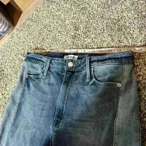 Elevate your denim collection with these Good American Good Waist Two Tone Side Stripe Skinny Jeans. This pair features a classic blue color with stripes on the sides, adding a touch of style to your outfit. The jeans come in size 6 and have a regular fit with a mid-rise, making them comfortable and perfect for any occasion.