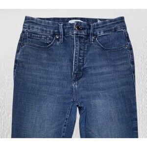 Good American Women’s High Rise Skinny Faded Blue Jeans Size 6/28 Distressed Hem