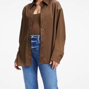 Good American Womens Size 3/4 Button Front Blouse Brown Long Sleeve Stretch Relaxed Oversized NWT MSRP $120 Style GWT 0142