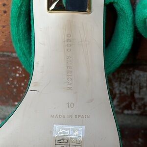 Good American Women's Terry Slip On Green & Gold High Heel Sandals Size 10