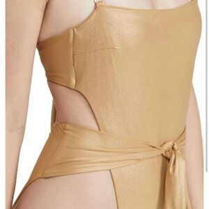 Good American Womens Tie Front One Piece Swimsuit 2XL Gold Lame Halter Goddess