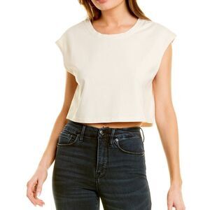 Essential Cropped Shoulder T-Shirt in putty with muscle sleeves and cropped hem