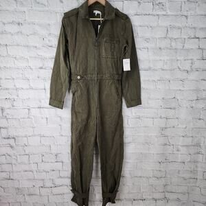 Good American military Jumpsuit Sz 1 green long sleeve zip up pockets new with tag A21N