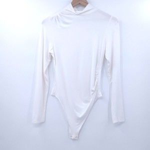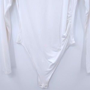 Good American mock neck bodysuit ruched long sleeve thong white Sz 3 Large.