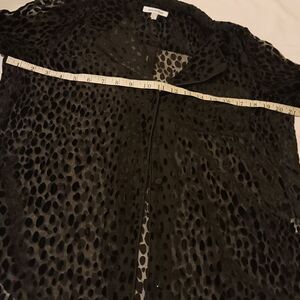 Sexy and versatile sheer, textured blouse. Great condition. Please refer to the photos for measurements and material information. size 3 in good American size is equal to size large. Smoke and pet free home.