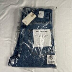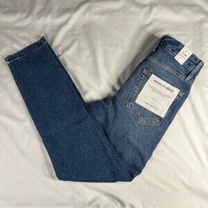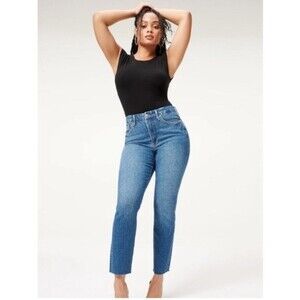 Good American size 2 Good Classic Raw Hem Medium Wash Jean Straight Leg Denim