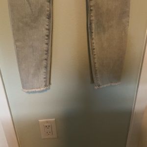 Good American 0/25, skinny indigo high rise slim-leg denim straight/stretch jeans, straight frayed bottom.