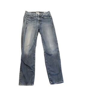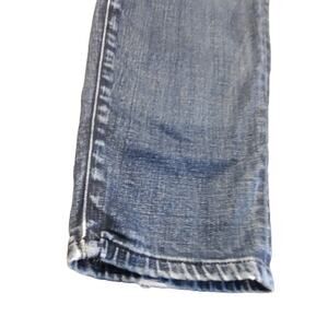 factory distressed jeans, has a nice dark with intentional very light worn spots.super soft and comfortable