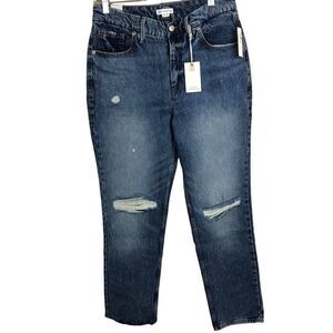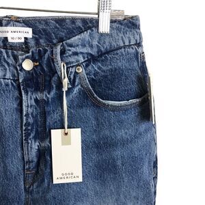 Good American 10 Good 90’s Icon Straight Leg High Rise Distressed Knee in Indigo