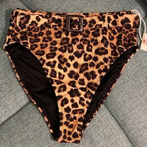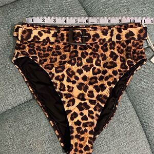 Good American Brown Leopard Print Showoff Belted Bikini Bottoms Womens Size 1