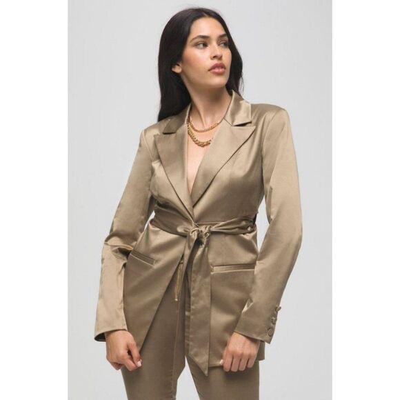 Good American Fit and Flatter Sateen Blazer in Tan. Size 4. Brand new with tags attached.