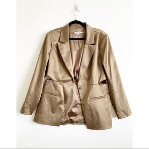Good American Fit and Flatter Sateen Blazer Tan Size 4 Cutout Pointed Lapel