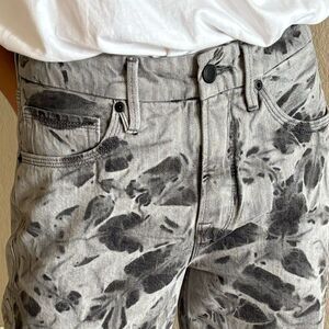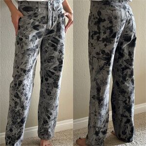 Good American Grey Jeans High Rise Straight Wide Leg Tie Dye Size 25