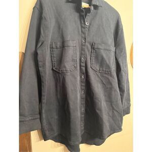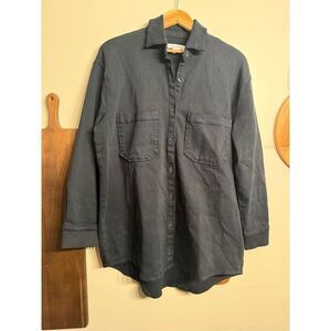 Good American Navy Cotton Blend Button Down Shirt Size 1