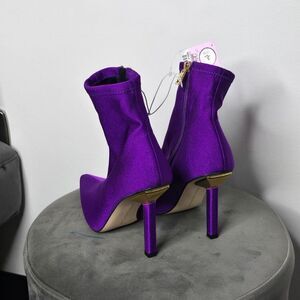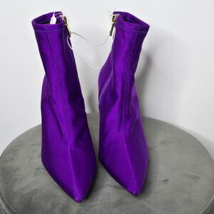 Elevate your style with these stunning Good American booties. The pointed toe and stiletto heel add a touch of sophistication, while the ankle shaft and zip closure provide a secure and comfortable fit. The purple neoprene upper material is perfect for any season, whether it's winter, summer, fall, or spring.