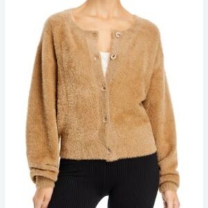 Good American Tan Fuzzy Soft Stretch Fall Cozy Cropped Cardigan Size 5
