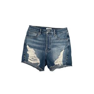 Good American The Bombshell Denim Distressed Jean Short Size 4/27 High Rise