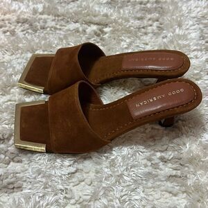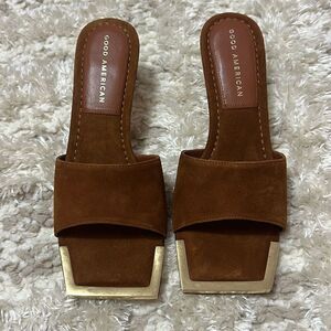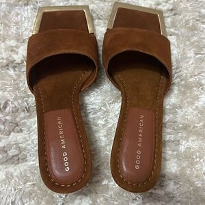 Good American The Standout Square Toe Slide Brown Gold Detail Women’s Sz 5 NWOB.
