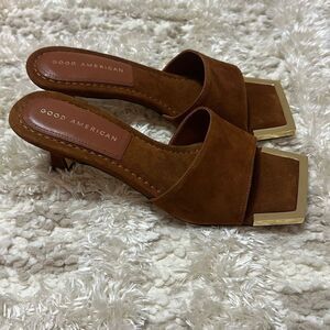 Good American The Standout Square Toe Slide Brown Gold Detail Women’s Sz 5 NWOB