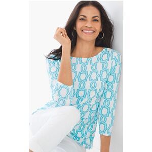 Good CONDITION WOMEN Chicos Sz 0 (xsmall) Graphic Geo Cotton Slub Top minor sta