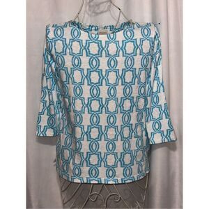Good CONDITION WOMEN Chicos Sz 0 (xsmall) Graphic Geo Cotton Slub Top minor stain
