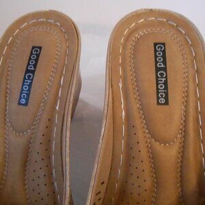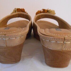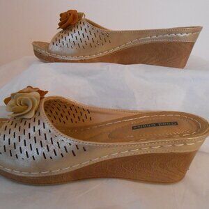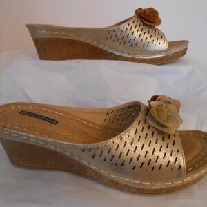 Good Choice Juliet Gold Slip On Wedge Heeled Slide Flower Accent-Size 10-NEW