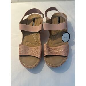 Good Choice Tammy Blush Embellished Elastic Double Band Wedge Sandals platforms Size 8.5 NWT Blush Color Pink