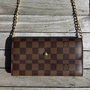 Chain included Louis Vuitton Damier Ebene International Long Wallet