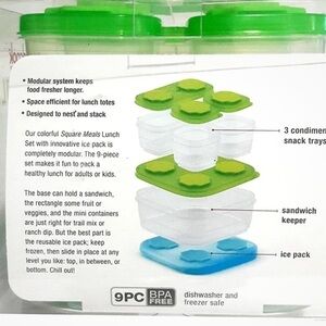 Good Cook Square Meals 9 Piece Lunch Set Green Modular with Icepack NWT Barcode