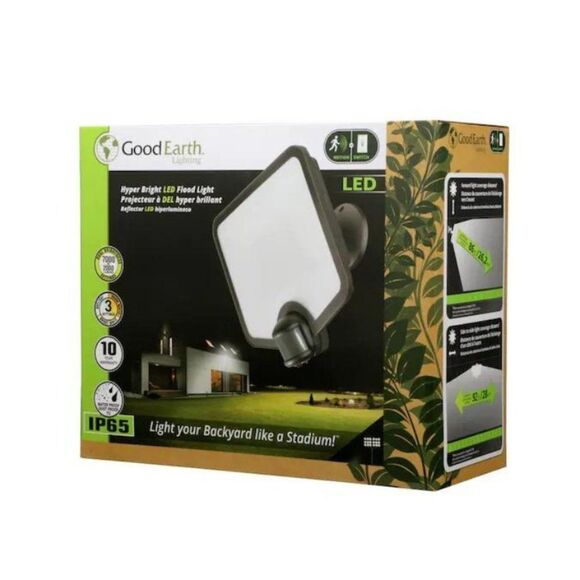 Light up your backyard or business like a StadiumTM with a Good Earth Lighting Hyper Bright LED Flood Light. The light is made of sturdy die cast aluminum housing with a shatter resistant diamond-patterned diffuser lens that provides a smooth and even light distribution. The LED security light features knob joints for easy head positioning and easy wall or eave mount installation. The motion activated light illuminates as motion is detected and turns off automatically when motion stops during nighttime hours. The built-in timer and distance control settings can be customized to meet a wide variety of lighting customization. Maximize energy savings and discourage intruders from coming near the home or business.