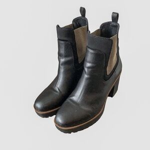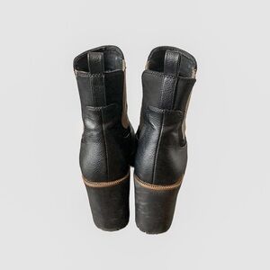 A lugged platform and chunky heel loft a striking utilitarian Chelsea boot.