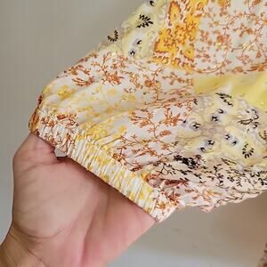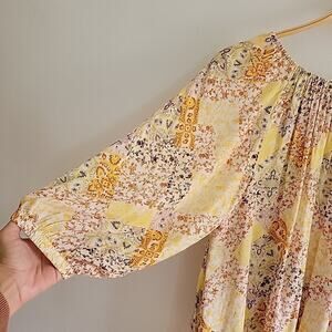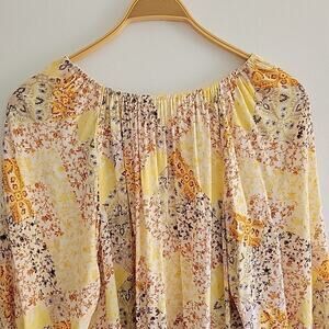 Good Hart Matilda Jane Peasant Blouse Yellow Printed 3/4 Puff Sleeve Boho Hippie