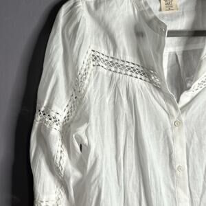 Good Hart White Semi Sheer Button Down Long Sleeve Shirt Crochet Detail Sz Med