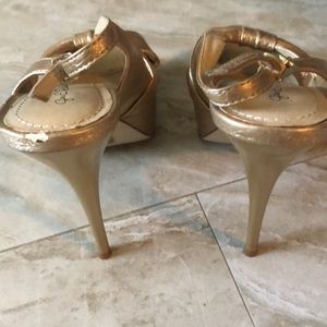 Barely used gold heels! Minor scratch on the back of left heel. Still an amazing deal!