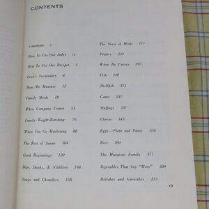 This is a vintage cookbook title The Good Housekeeping Cookbook. Produced by the people from Good Housekeeping magazine this book has step by step recipes from soup to desserts, cocktails to casseroles perfect for the beginning cook or experienced chef. There are a few hand written recipes and clippings tucked in the pages. Original dust jacket.