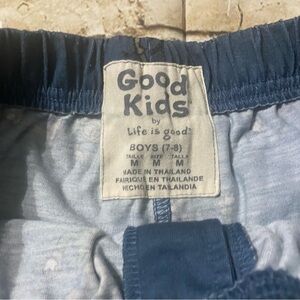 Good Kids Life Is Good Boys 7-8 Medium Snowball Fight Pajama Pants in good used condition. There is some wash wear. No stains, tears or rips.
