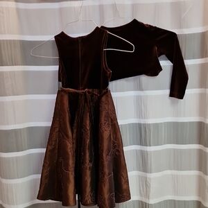 Beautiful formal brown dress with floral details. Includes matching jacket. Ideal for formal events. Excellent used condition.