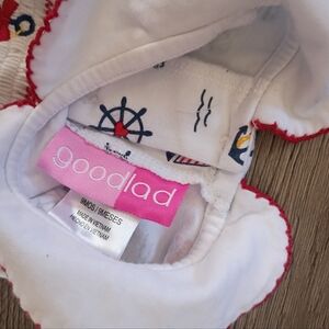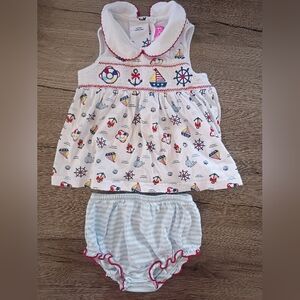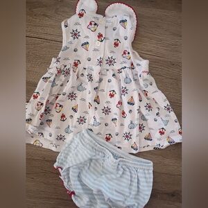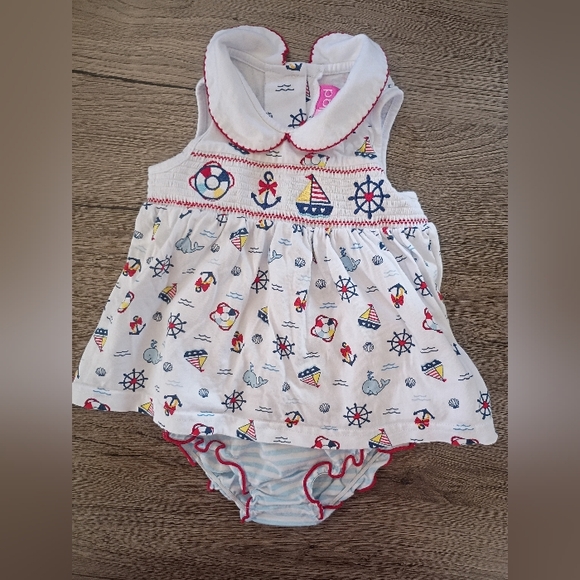 Charming dress with nautical designs. Includes steering wheels and anchors. Red trim adds a pop of color. dress with diaper cover. size 9 months. bundle with my other listings