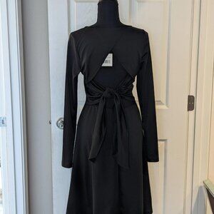 Good Luck Gem Black Long Sleeve A- Line Open Back Midi Dress NWT