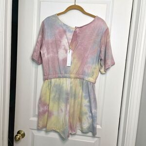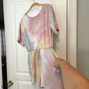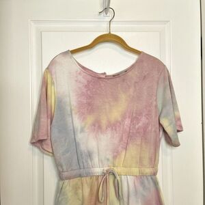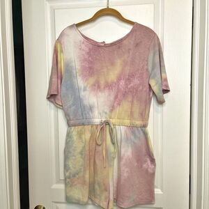 Good Luck Gem NWT One Piece Tie Dye French Terry Drawstring Waist Pocket Romper