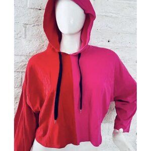 Good Luck Gem Nordstrom Womens Size XL Color block Cropped Pink Red Hoodie NEW.