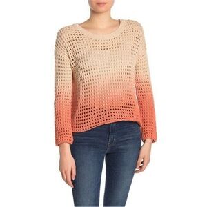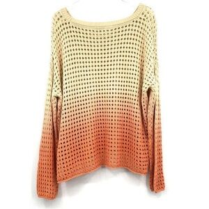 Good Luck Gem | Orange Ombré Open Knit Stitch Long Sleeve Pullover Sweater XL